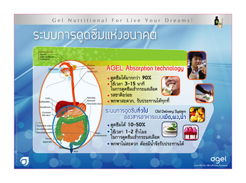 แต่ระบบการดูดซึมของเจลเป็นนวัตกรรมใหม่สามารถดูดซึมได้ 90-100% ใช้เวลา3-15 นาทีแร้วได้รับสารอาหารครบถ้วน ในการดูดซึมเข้าสู่กระแสเลือดซึ่งดูดซึมตั้งแต่กระพุ้งแก้มไม่ผ่านตับไตไม่ทำงานหนัก รสชาติอร่อย พกพาสะดวก รับประทานได้ทุกที่