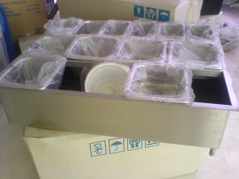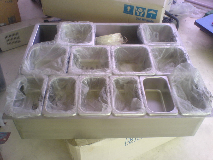 ขายเครื่องทำน้ำแข็งเกล็ดหิมะ ใหม่ยังไม่ได้ใช้งานพร้อม กระบะอลูมิเนียมขนาดใหญ่พร้อมหลุม 14 อันของใหม่