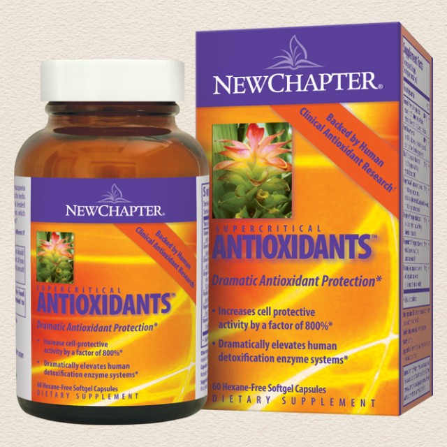 New chapter - Supercritical Antioxidants™ 60 Softgels ผลิตภัณฑ์ของ New Chapter ทั้งหมดจะเป็นแบบ Organic คือใช้เกษตรอินทรีย์ในการเพาะปลูกเพื่อนำพืชต่างๆ มาสกัดเอาส่วนผสม ดังนั้นราคาจึงค่อนข้างสูงนิดนึงสามารถดูราคาขายจากเวบนอกได้เลยครับ แต่สำหรับผู้ที่ต้องการหาอาหารเสริมดีๆ สักตัวมาทาน ผมว่าสินค้าของ New Chapter ตัวนี้คุ้มค่ามากครับ เนื่องจากประกอบด้วยส่วนผสมจากพืชสมุนไพรที่คัดสรรแล้ว 7 ชนิด อลงอ่านคุณสมบัติซึ่งผมแปลจากฉลากผลิตภัณฑ์ดูครับSupercritical Antioxidants New Chapter has extensively researched the herbal pharmacopoeia and international medical databases and discovered that the following time-tested herbs, properly extracted and blended in the correct proportions, contain multiple antioxidants which dramatically elevate human detoxification enzyme systems.*