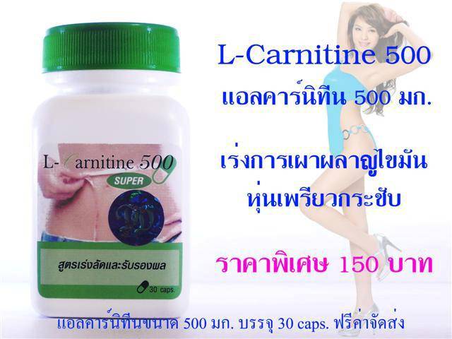 L-Carnitine 500 SUPER ขนาด 30 cap.สูตรเร่งลัดและรับรองผลผ่านมาตาฐานการผลิต GMP หมายเลข อย. 12-108152-1-0020