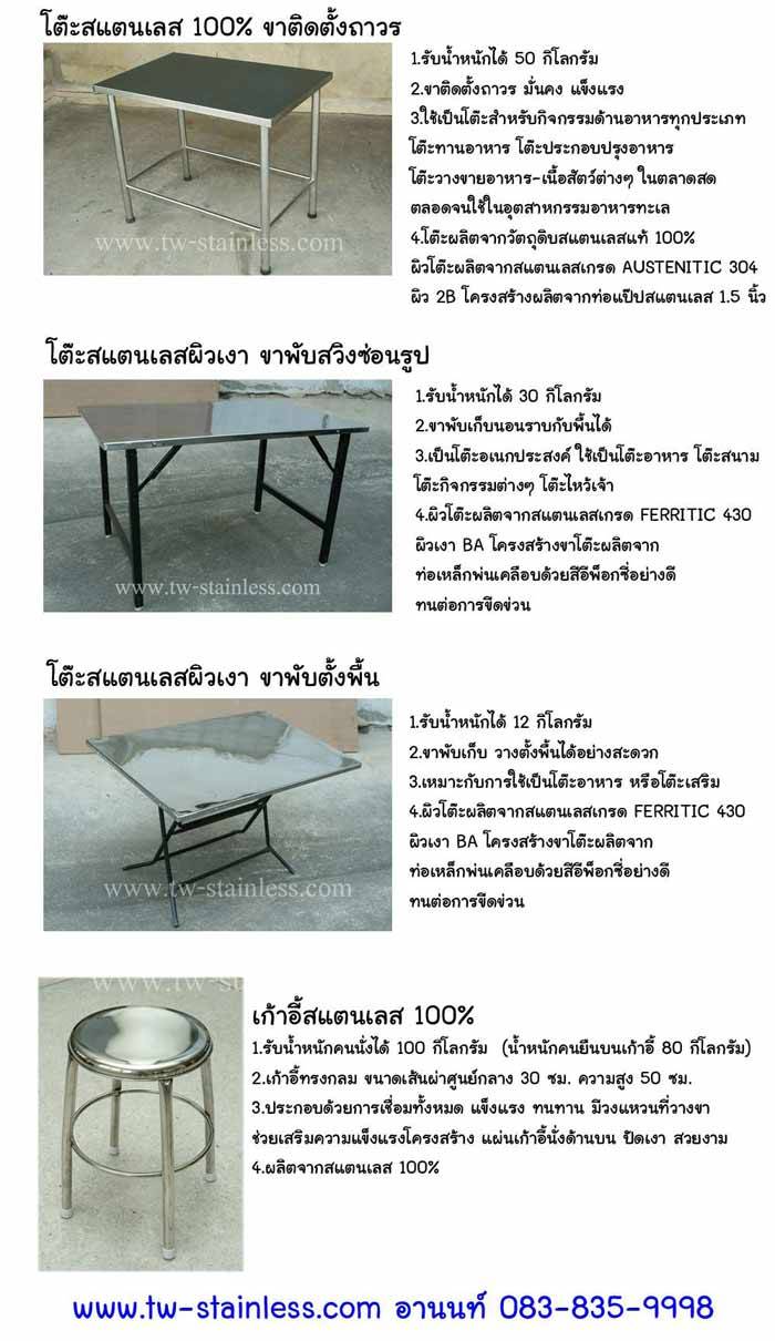+++โต๊ะสแตนเลส /เก้าอี้สแตนเลส เกรด A เพื่อร้านอาหารและงานครัว+++