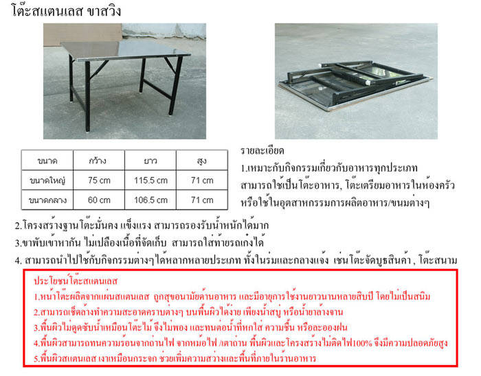 2.มีความปลอดภัย และถูกสุขอนามัยต่ออาหาร จึงเหมาะในการใช้งานด้านการปรุงอาหาร การผลิตอาหาร หรือใช้เป็นโต๊ะทานอาหารทั่วไป