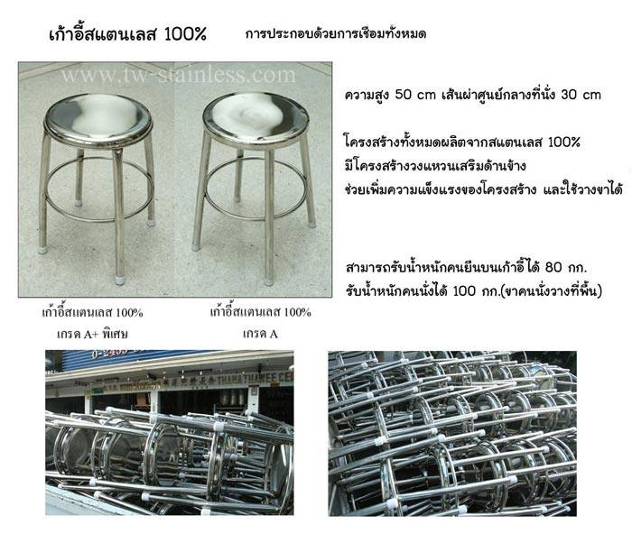 เก้าอี้สแตนเลส 100% อย่างดี ทรงกลม แข็งแรง ทนทาน รับน้ำหนักได้ 100กก. เส้นผ่านศูนย์กลาง 30 ซม. สูง 50 ซม.