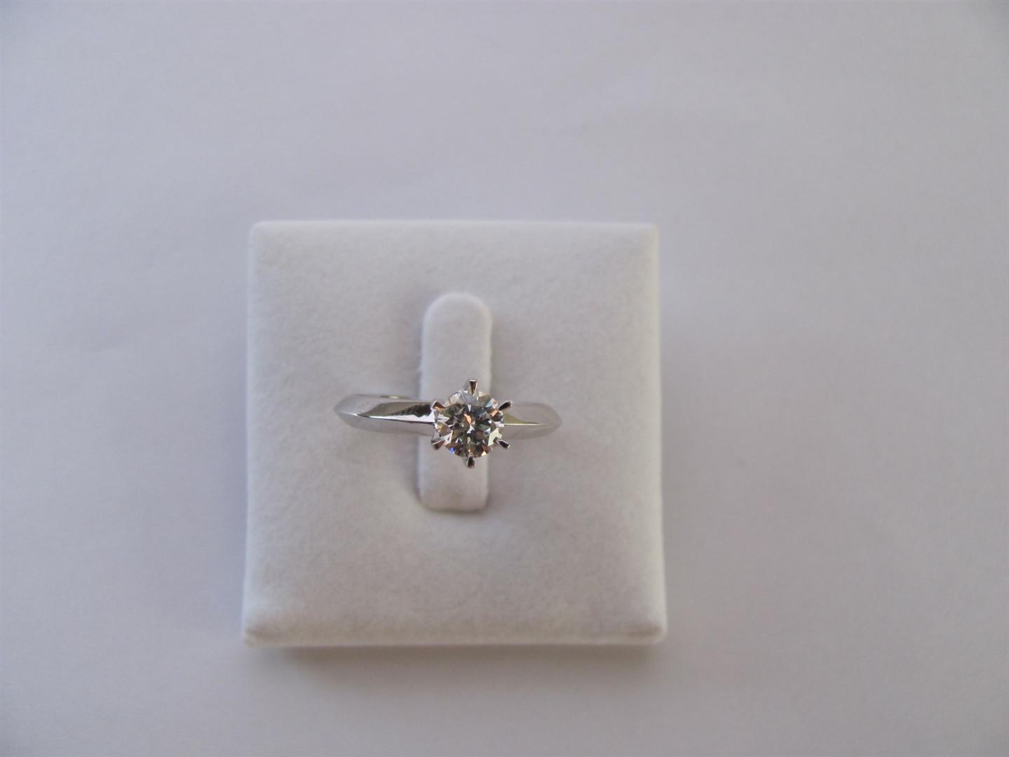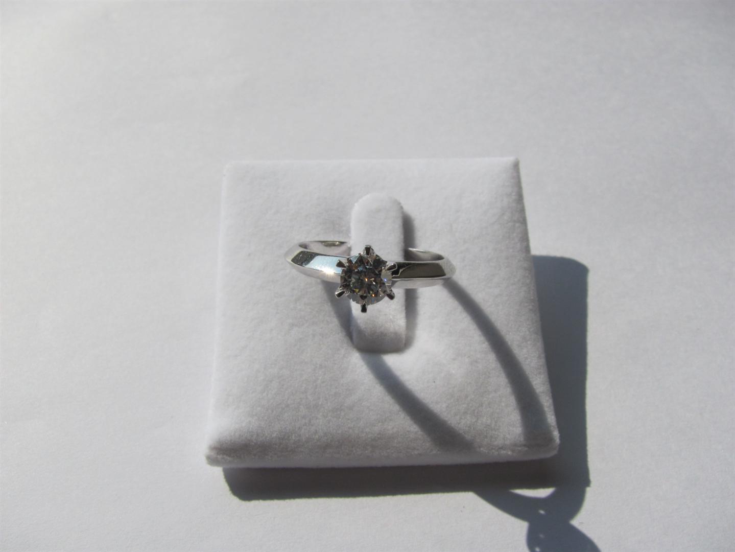 แหวนเพชเดี่ยว เป็นสไตล์แหวนหมั้น น้ำหนัก 0.47 ct. ตัวเรือนทองขาว 18k น้ำ 97 / F color , VVS1 เหลี่ยมเจียระไน ชั้นหนึ่ง H&A เพชรน้ำขาว+การเจียรไน ระดับพระกาฬ ผลที่ได้คือ ประกายของเพชร เต็ม 100 สุก ใส สว่าง