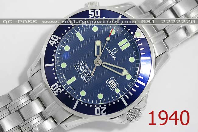 OMEGA SEAMASTER 300 M (King Size 40 mm.) หน้าปัดลายคลื่นน้ำ ขอบหน้าปัดหมุนได้เหมือนของแท้ ขอบ มีให้เลือกทั้งสีดำ และ น้ำเงิน กระจก Sapphire แท้ กันรอย ส่งฟรีด่วนใน 1 ชม.
