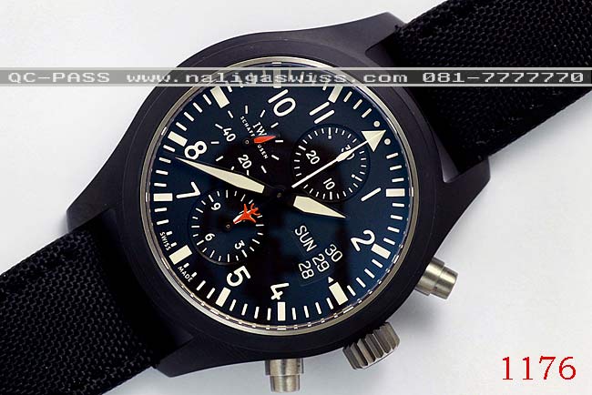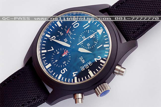 IWC PILOTS CHRONOGRAPH TOP GUN PVD (King Size) ปรับปรุงใหม่เหมือนของแท้ สุดๆ ขนาดตัวเรือนเท่าของแท้ ข้างตัวเรือนปั้ม TOP GUN ด้านท้ายเข็มวินาที เป็นรูปเครื่องบิน จับเวลาได้จริง งานเกรด Top สุด AAA ส่งฟรีครับ