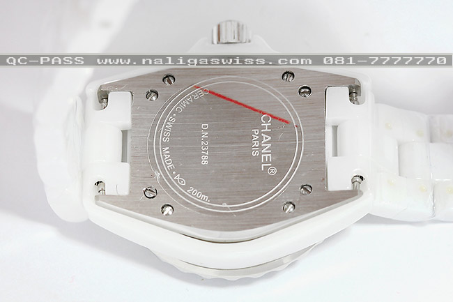 CHANEL J12 WHITE CERAMIC หลักเพชร (มีทุก Size) เหมือน 100% ตัวเรือนและสายผลิตจากเซรามิกสีขาวแท้ 100% กันรอยขีดข่วน ใช้นานแค่ไหนก็ไม่เก่า ไม่เปลี่ยนสี / ส่งฟรีให้ถึงมือใน 1 ชม. สอบถามได้เลยค่ะ >> 081-7777770
