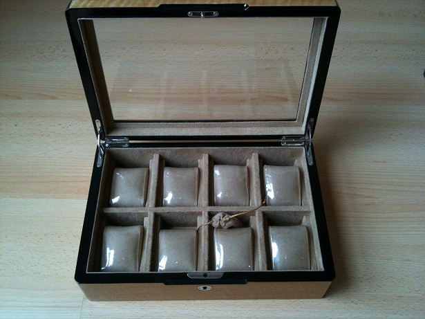 กล่องนาฬิกา Watch Box สำหรับใส่นาฬิกา 8 เรือน ตัวกล่องทำจากไม้ MDF ลงสีแบบไฮกรอสสีน้ำตาลวีเนียร์ลายไม้สัก ภายในบุด้วยกำมะหยี่สีครีม สวยงามดูสวยงาม ควรคู้นาฬิกาคุณ สามารถวางโชว์ได้หรือจะเก็บไว้ในเซฟก็น่าชม คุณภาพงานสวยสุดๆ