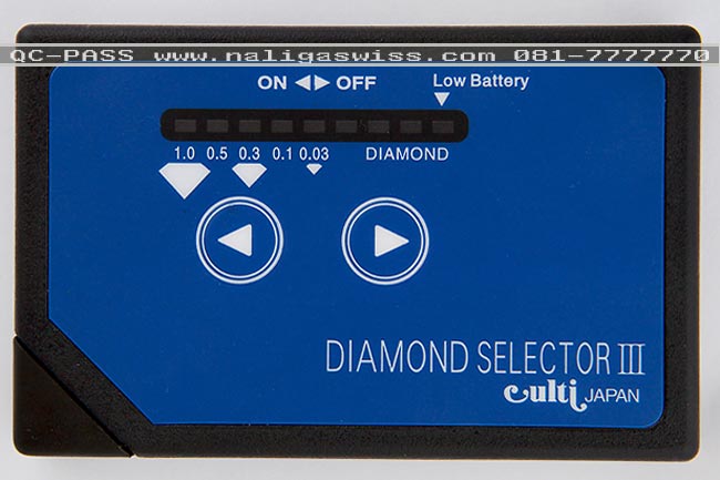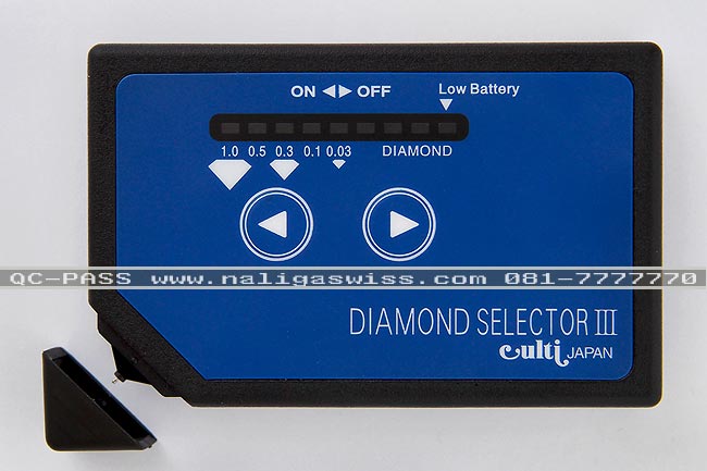 ** เครื่องตรวจเพชร แบบพกพา ใหม่ล่าสุด รุ่น DIAMOND SELECTOR III เล็กเท่าบัตรเครดิต (85X54mm.) บางเฉียบเพียง 14 mm. เป็นรุ่นที่พกพาง่ายที่สุด สามารถใส่กระเป๋าเสื้อได้ค่ะ ปุ่มกด รุ่นใหม่ เป็นระบบสัมผัส และ สามารถใช้ถ่าน AAA ซึ่งสามารถหาซื้อได้ทุกที่