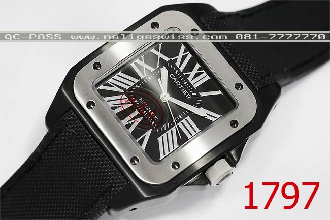 Cartier Santos 100 Carbon - King Size 38mm. เป็นขนาดพอดีไม่ใหญ่ไม่เล็กเกินไป ใส่กำลังสวยค่ะ งานเกรด AAA Top สุด เหมือน 100% ทั้ง Body และ ฟังก์ชัน สอบถามส่วนลดได้ค่ะ 081-7777770 / www.naligaswiss.com ส่งฟรีถึงบ้านใน 1ชม.