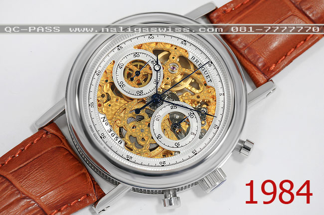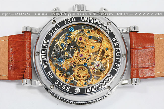 BREGUET Skeleton Chronograph หน้าปัดขาว (King Size 43.5mm) สวยสุดโชว์เครื่องสีทอง แกะลายด้วยมือ สวยคลาสสิค ไม่ซ้ำใครแน่นอนครับ ส่งฟรีถึงบ้าน ใน 1 ชม. สอบถามก่อนได้ครับ รูปถ่ายจากสินค้าจริง