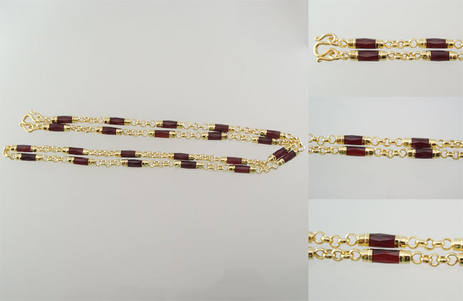 สร้อยคอโกเมนแท่ง ลายผ่าหวาย 5 ห่วง พลอยขนาด 10 มิล 22 เม็ด ความยาว 53.5 ซม. ของใหม่