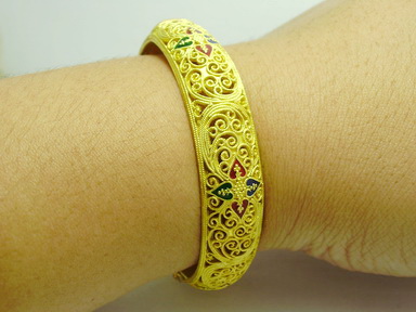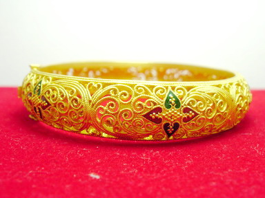 กำไลข้อมือ ทอง99.99 ลงยาฉลุลาย สวย นน52.45 กรัม