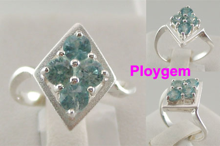 แหวนพลอยเพทายสีฟ้า Blue Zircon ตัวเรือนเงินแท้ 92.5% ส่งฟรี