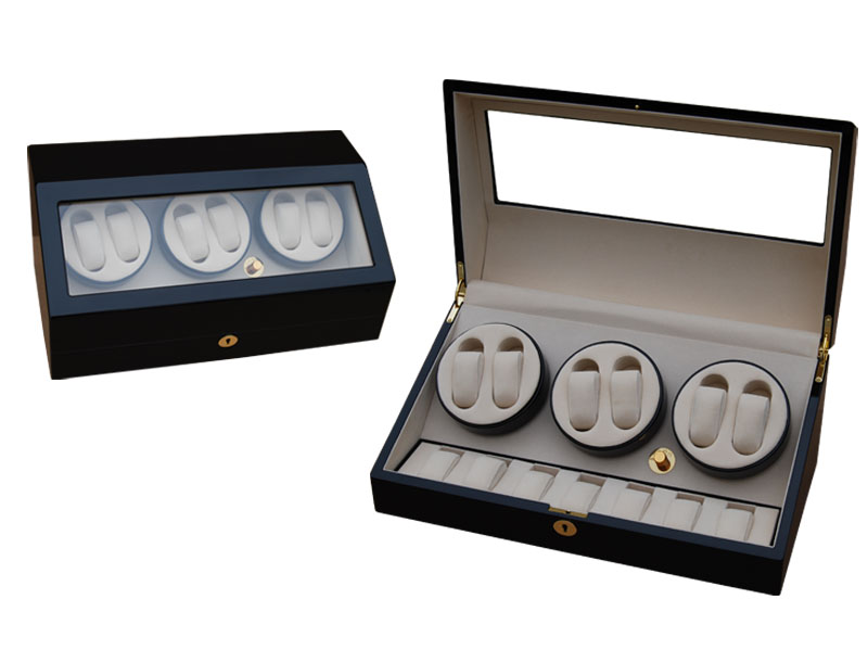 กล่องหมุนนาฬิกา หรือ Watch Winder สำหรับหมุนนาฬิกาแบบออโตเมติก 6 เรือน และมีช่องเก็บนาฬิกาแบบควอชอีก 7 เรือน