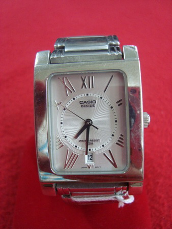 นาฬิกา CASIO beside ชาย กรอปสี่เหลี่ยม เลขโรมัน เรือนเงิน กันน้ำ บอกวันที่ สภาพ 95 % ส่งฟรี