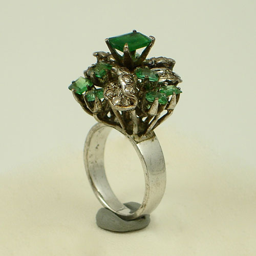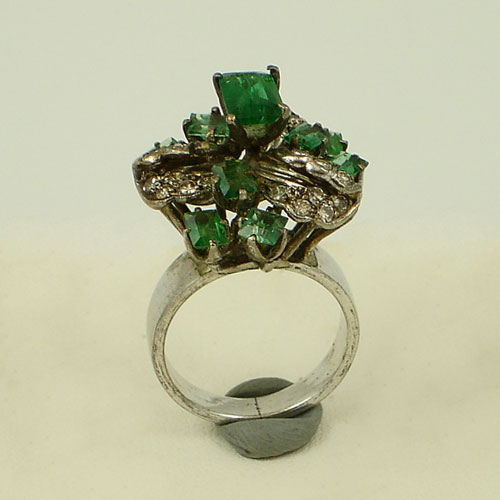 แหวนมรกต เพชร ตัวเรือนทองขาว ฝังมรกตสิบเม็ดรวมประมาณ 1.50 cts. และเพชรเกสรประมาณ 0.46 cts. น้ำหนักรวม 8.2 กรัม หน้ากว้าง 2.0 cm. Size 51 www.mangmee.net