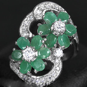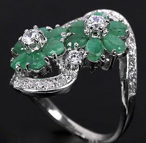 ชื่อสินค้า : แหวนเงินชุบทองคำขาวประดับพลอยแท้มรกต