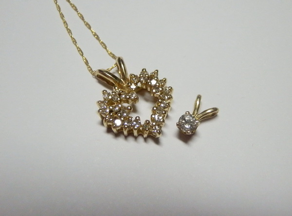 สร้อยคอทองพร้อมจี้เพชรสองชิ้น (จี้เพชรรูปหัวใจ + จี้เพชรเม็ดเดี่ยว)