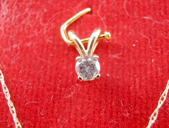 - จี้เพชรเม็ดเดี่ยว 10 ตังค์ ตัวเรือนทอง 14k