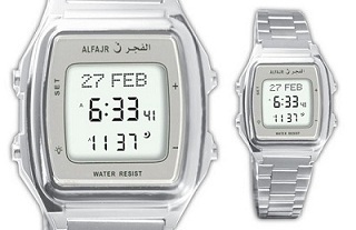 spec ตามนี้ : Manufacturer: Alfajr Watch and Clock Co. (Saudi Arabia) Product type: Azan watch Product description: This is a handy watch, with azan times (beeps at 5 azans, no voice azan). Online User's Manual (PDF document) Round stainless steel polished case Stainless steel bracelet with double folding clasp Scratch-resistant glass Crystal FSTN LCD with Blue El back light Water resistant 3 ATM Case size 35.3 mm weight 75 grams AZAN TIMES (for all cities around the world): All the cities around the world are pre-programmed in the watch. And other smaller locations can be programmed using latitude, longitude and GMT information. Azan times are calculated accurately, ALFAJR watch uses the local taqweem or the most widely used taqweem system for your city. Other standard taqweem systems are available, as follows: Islamic World Organization (Muslim League) Fajr azan time is calculated based on 18 degrees angle below the horizon before shrooq time. Isha azan time is calculated based on 17.5 degrees angle below the horizon after magrib azan. This system is widely used in Europe and the Far East.