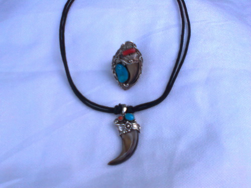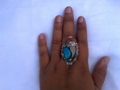 แหวนเล็บหมี ตัวแหวนเป็นเงินแท้ 92.5 ประดับเทอร์คอย+ประการังแดง สไตล์คาวบอย งานเงินเก่าแกะลาย ไซด์ประมาณ 65-66 วงใหญ่สวยค่ะ 2800 2500