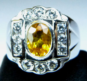 ชื่อสินค้า : แหวนเงินชุบทองคำขาวประดับพลอยบุษราคัม