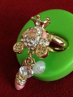 แหวนแฟชั่นสุดกิ๊บเก๋ สามารถขยายตามขนาดนิ้วของผู้สวมใส่ ลายรถฟักทอง มีห้อยรองเท้าแก้วที่แสนจะน่ารัก ราคาถูกพิเศษ สามารถส่งของทางไปรษณีย์ให้ได้นะคะ