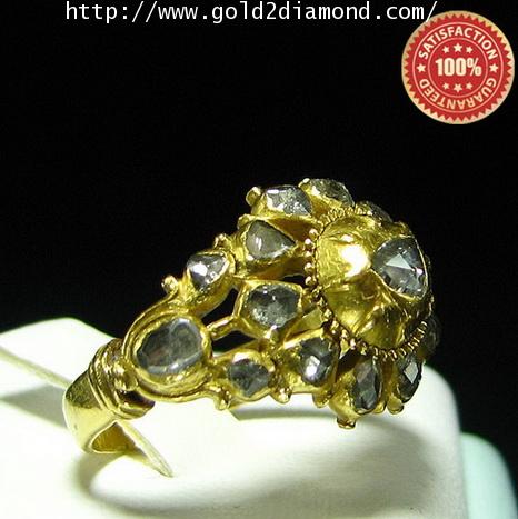 แหวนเพชรซีก ทอง 90 งานเก่าลายโบราณ