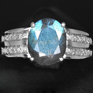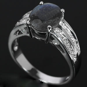 ชื่อสินค้า : แหวนเงินชุบทองคำขาวประดับพลอยโทลาบราโดไรท์