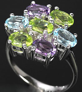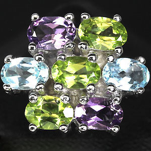 แหวนพลอยแท้หลากสี 7.45 กะรัตโทปาส เพอริดอดและแอเมทิสต์(3169)