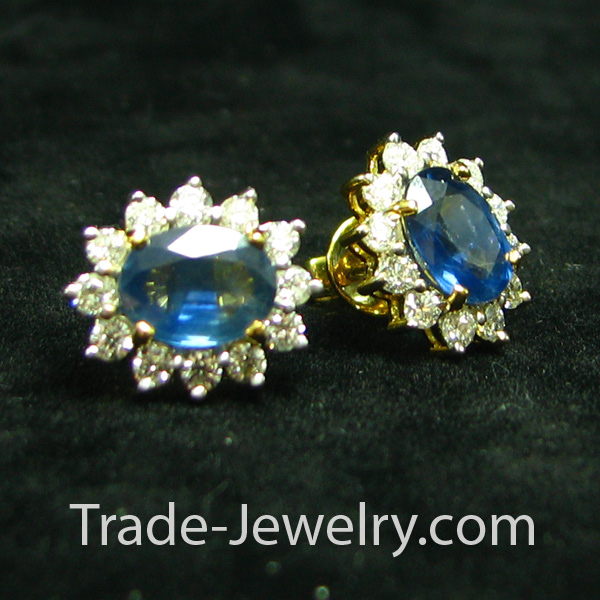 ต่างหูไพลิน ล้อมเพชร จี้เพชร ทองคำขาว แหวนเพชรทองคำขาว