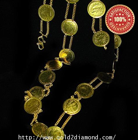 สร้อยคอ ทองลายเหรียญ ฝรั่งทอง 22 K งานเก่า ทอง91.6 %