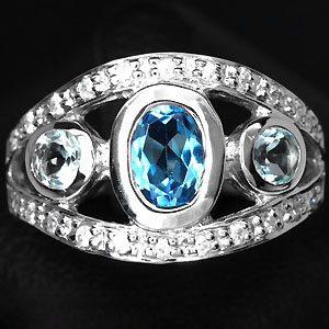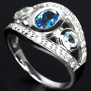 แหวนพลอยแท้โทปาสสีฟ้าสดสวยและสีฟ้าอ่อนทรงทันสมัย(3150)
