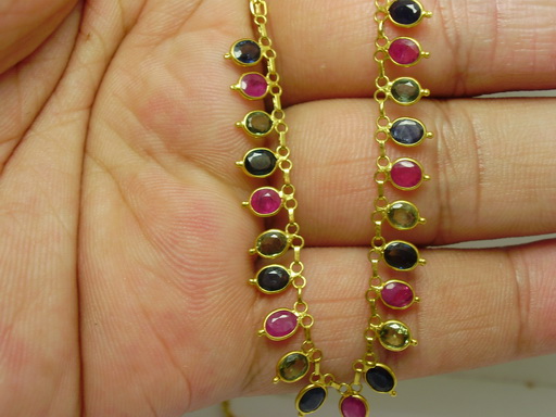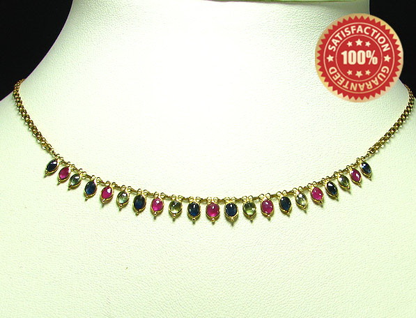 สร้อยคอพลอย3สี ทับทิม ไพลิน มรกต งานเก่า ทอง90%