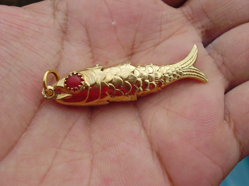 จี้ทองรูป ปลา กระดุกกระดิก ได้ งานทองเก่า งานชิ้นนี้ เป็นงานสะสม ห้อยพวงกุญแจ น่ารัก