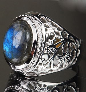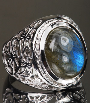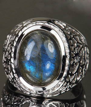 แหวนพลอยแท้ลาบราโดไรท์ 8.80 กะรัตแกะลายด้านข้าง(2964)