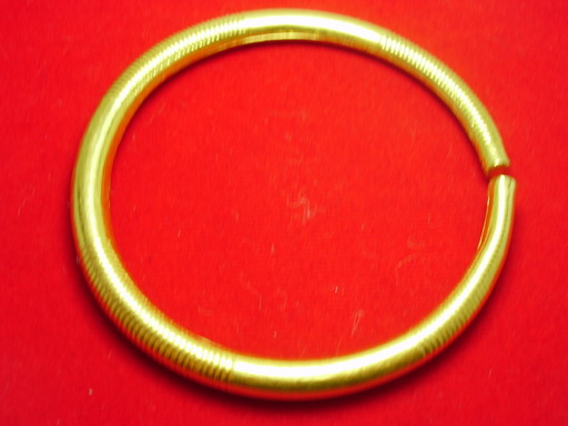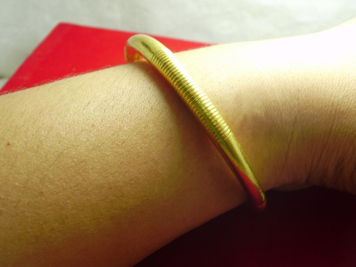 กำไลทอง 100% ดุนลาย ทองเก่า งาน ทองโบราณ แท้ หายาก ชิ้นนี้เป็นงานดุนลาย ภายในเป็นทองแดงหุ้มด้วยทอง100% ดุนให้เกิดลาย งานเก่าแท้สมัยนี้ไม่มีทำกันแล้ว รายละเอียดสินค้า ทองแท้น้ำหนักรวมทั้งหมด 14.66 กรัม (ชั่งน้ำหนักรวมทั้งชิ้น) ความกว้าง 0.50 cm. เส้นผ่าศูนย์กลาง 6.2 cm. !!!สำหรับผู้ชื่นชอบสะสมงานโบราณ !!! !!!!! งาน ทองโบราณ !!!!!!! งานช่างสลักดุน งาน สลักดุน เดิมเรียกกันว่างานบุดุน เพราะจะใช้โลหะเป็น แผ่นบางๆ แล้วไปหุ้มบนวัสดุที่มีรูปทางแล้ว กล่าวคือหุ้มข้างนอกวัตถุเดิม เพื่อให้เกิดความพิเศษ เป็นเอกลักษณ์เฉพาะ เช่น การบุทองคำบนขันเงิน พานเงิน หรือพระพุทธรูป เป็นต้น แต่ปัจจุบันไม่ค่อยนิยม เพราะความบาง ของเนื้อโลหะที่มีความหนามากกว่า ฉะนั้นช่างบุดุน ปัจจุบันจึงพัฒนา เทคนิคจากงานบุดุนมาเป็นการสลักดุน ซึ่งสามารถใช้สิ่วสลักตอกลงไป บนแผ่นโลหะ และดุนขึ้นให้สูง หรือสร้างสรรค์งานได้ตามความต้องการ โดยไม่ต้องคำนึงถึง ว่าเนื้อโลหะจะฉีกขาด หรือชำรุดได้ง่าย ความหมายของงานสลักดุน การส ลัก หมายถึงทำให้เป็นลวดลาย หรือตัวหนังสือด้วยของ มีคม โดยการใช้สิ่วหรือเครื่องมือสลัก ตอกด้วยค้อนลงไปบนแผ่นโลหะ ให้เป็นร่องลึก เพื่อให้เห็นลวดลาย หรือภาพชัดเจนโดยไม่ต้องให้เนื้อของ โลหะนั้นๆ หลุด หรือสึกออกไป การดุน หมายถึง การทำให้โลหะต่างๆ ให้เป็นรอยนูนขึ้นคล้ายๆ กรรมวิธีการปั๊มหรือดุนลาย งาน สลักดุน จัดเป็นกรรมวิธีพิเศษที่ต้องอาศัยความชำนาญ ความสามารถเฉพาะ ต้องใช้เทคนิคของช่าง แต่ละคน และต้องทุ่มเทปฏิบัติงานทั้งแรงกาย และแรงใจอย่างจริงจัง เพื่อให้เกิดความวิจิตร มีคุณค่าและเกิดการยอมรับ ในฝีมือ เพราะการทำงานกับโลหะนั้นจะเกิดความผิดพลาดขึ้นได้โดยง่าย หมายเหตุ 1.น้ำหนักที่ระบุเป็นน้ำหนักของตัวเรือนรวมน้ำหนักของพลอยหรือเพชรแล้ว อาจมีการ เปลี่ยนแปลงในกรณีที่เป็นแหวนแล้วมีการเปลี่ยนแปลงขนาด 2.น้ำหนัก เพชรที่ระบุ เป็นน้ำหนักเพชรโดยประมาณ เพราะสินค้าเป็นสินค้าหลุดจำนำไม่สามารถนำมาชั่งโดยละเอียดได้ (ยกเว้นสินค้าบางชิ้นที่ระบุไว้ชัดเจนว่าน้ำหนักผ่านการชั่ง) การเลือกซื้อ และการประเมินคุณค่า เครื่องประดับโบราณ เรา พิจารณาจากความ ประณีต สวยงาม รูปแบบที่แปลกตา หายาก และความสมบูรณ์ของชิ้นงานประกอบกับ ชนิด ขนาด จำนวน และคุณภาพของเพชรพลอยในชิ้นงาน โดยไม่ได้ให้ความสำคัญกับชนิดของโลหะมีค่า ที่ประกอบเป็นตัวเรือนแต่อย่างใด องโลหะมีค่า ที่ประกอบเป็นตัวเรือนแต่อย่างใด น้ำหนัก : 14.66 กรัม เว็บไซต์ที่เกี่ยวข้อง: http://www.gold2diamond.com E-mail :