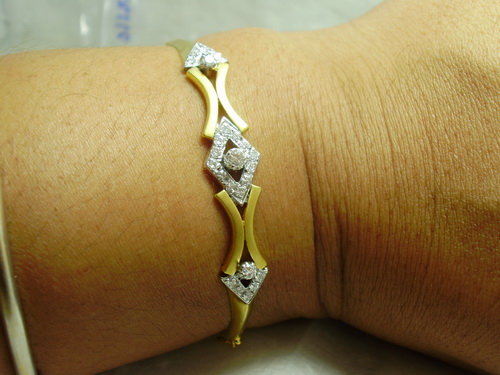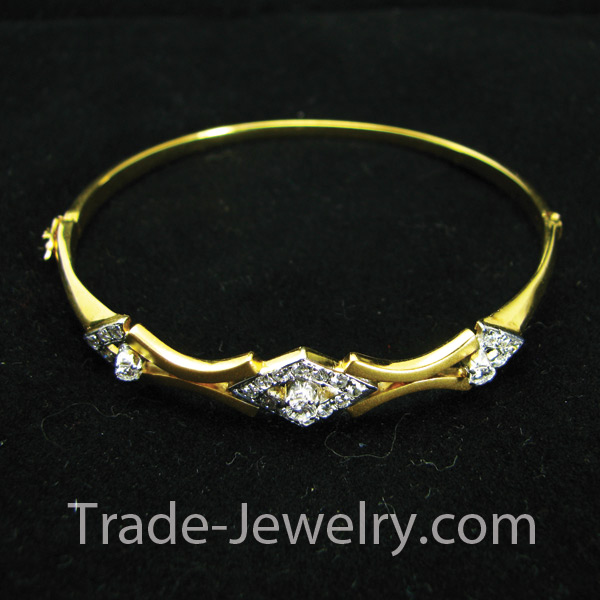 กำไล ทองคำฝังเพชร เพชรขาว สวย ไฟดี ไม่มีตำหนิ รัชเชี่ยนคัท ความกว้างโดยประมาณ0.9 เซนติเมตร เส้นผ่าศูนย์กลาง 5.50 ซม.