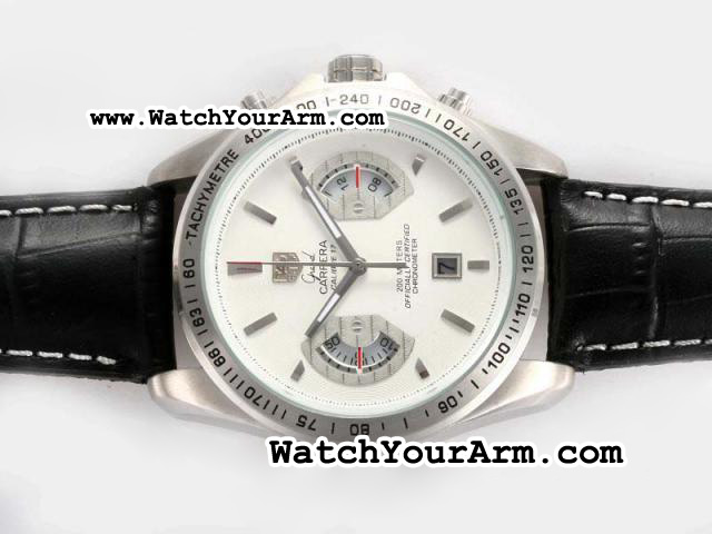 Tag Heuer Grand Carrera Calibre 17 หน้าปัดขาว สายหนังแท้