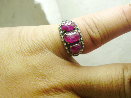 แหวน ทับทิมพม่า ล้อมเพชร งานเก่าโบราณมากกก ตัวเรอนเก่าจนดำ