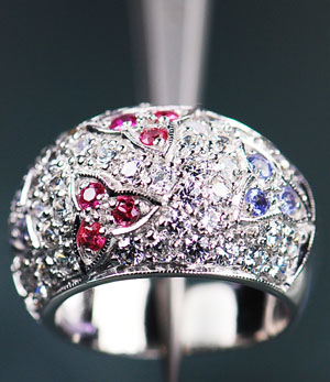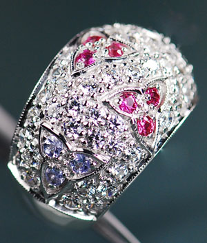 แหวนพลอยทับทิมและแทนซาร์ไนท์ล้อมด้วยเพชรสวิสเกรดเอ (2734)