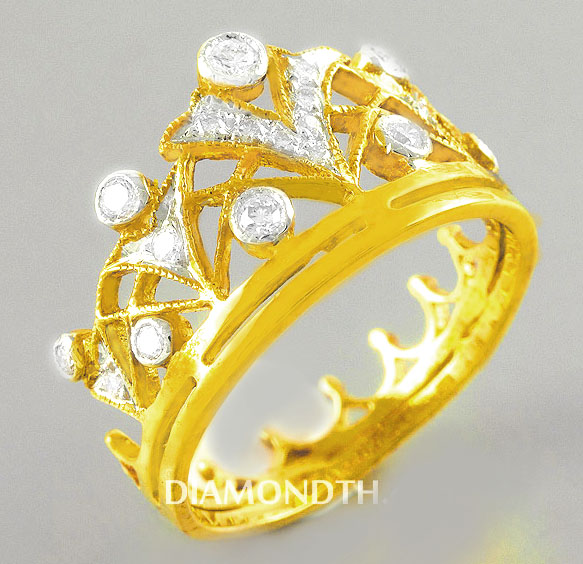 แหวนเพชรแท้ แหวนหมั้น งานจิวเวลรี่ แหวนทองคำแท้ 90 ฝังเพชรแท้ เพชรแท้เหลี่ยมเกสร ดีไซน์เป็นมงกุฏสวยงาม ถูกคุ้มค่าสุดๆค่ะ