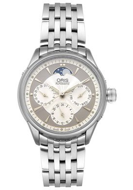 @@ ลดราคาพิเศษ Oris Men s 581 7606 4051MB Artelier Complication Silver and Grey Guilloche Dial Watch @@