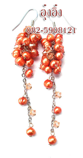 ต่างหูมุกน้ำจืดแท้100%ย้อสีส้มสลับคริสตัลswarovskiห้อยเป็นพวงฟูยาวระย้า มุกเม็ดเล็กสวมใส่สบาย เงางาม ขนาดแต่ละเม็ดจะไม่เท่ากันเป๊ะเป็นสเน่ห์ของมุกแท้จากธรรมชาติ
