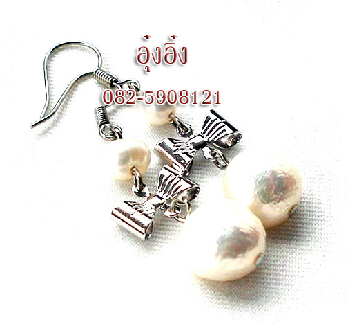 ต่างหูมุกน้ำจืดแท้100%สีครีมเม็ดใหญ่ประดับโรเดียมรูปโบว์สุดน่ารัก สีขาวสะอาดตา หรูหราเรียบร้อย