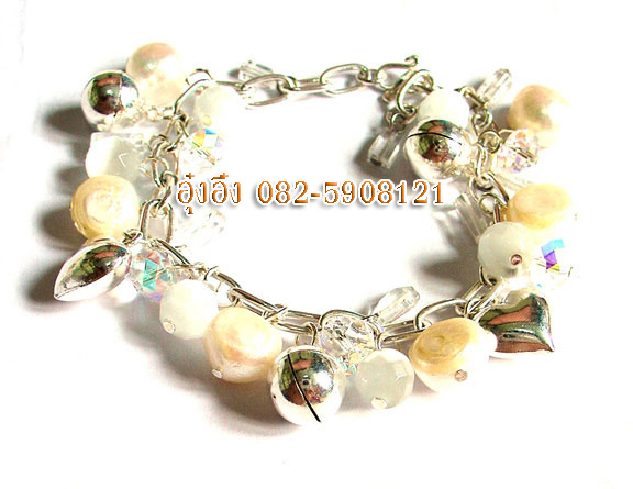 สร้อยข้อมือมุกน้ำจืดแท้100%สีครีมเม็ดใหญ่สลับคริสตัลswarovskiในโซ่เงินแท้92.5%เส้นใหญ่ๆสวยมากค่ะ ขนาดแต่ละเม็ดจะไม่เท่ากันเป๊ะเป็นสเน่ห์ของมุกแท้จากธรรมชาติ