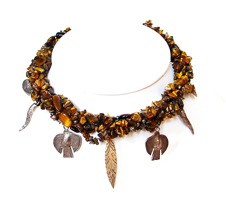 สร้อยคอหินไทเกอร์อายส์พันกัน 4เส้นคล้องจี้เงิน 7ชิ้นสวยแบบสาวเซอร์