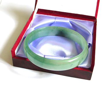 กำไลหินหยกสีเขียวน้ำใส เนื้อเงามัน เป็นชิ้นเดียวกันทั้งวงน่าสะสมค่ะ