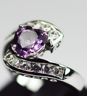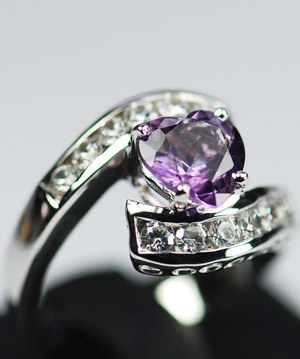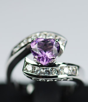 แหวนพลอยแอเมทิสต์ (Amethyst) สีม่วงรุปหัวใจสวยประดับเพชรด้านบนล่าง(2556)